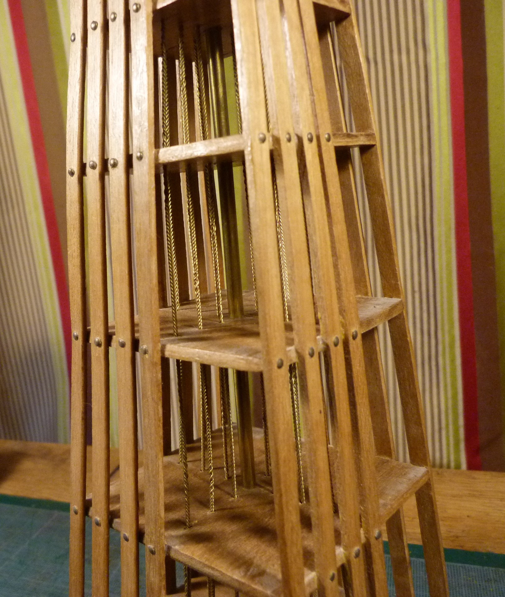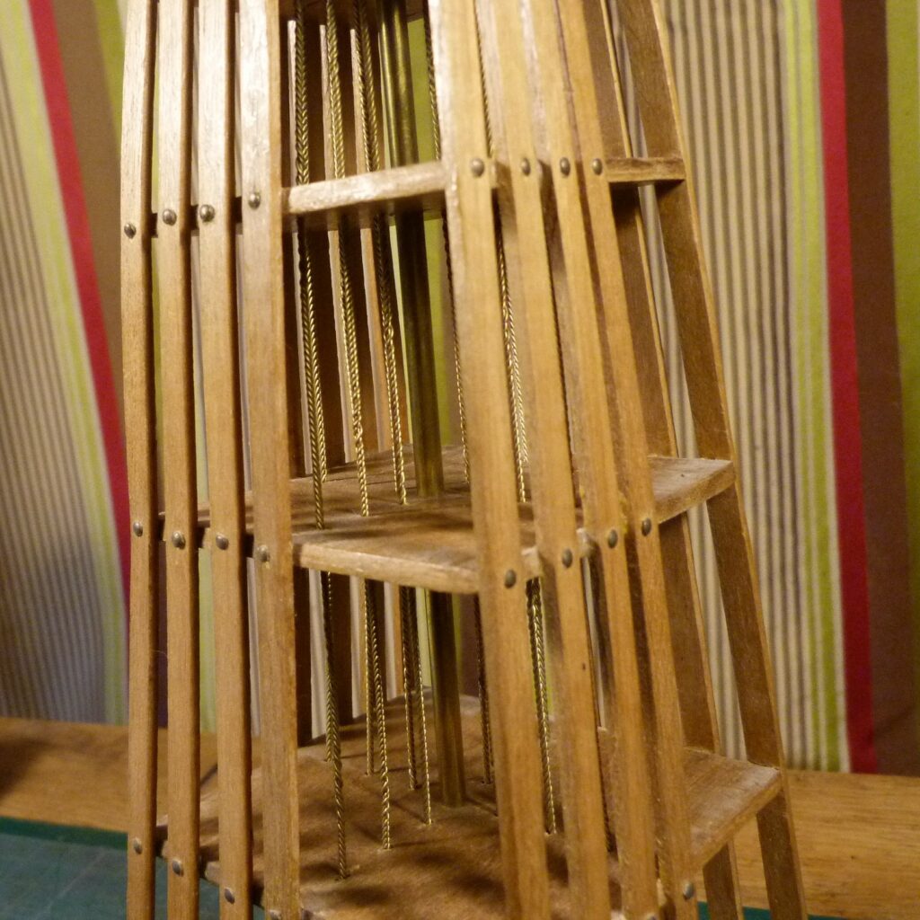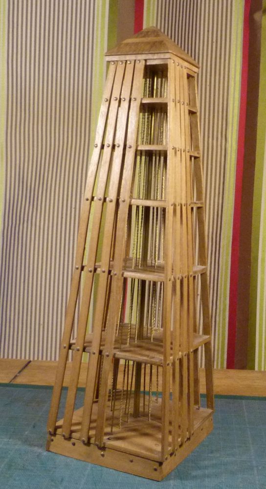 Cette bibliothèque en bois est une pyramide régulière (à peu près) de 27cm de haut et dont la base est un carré de 8cm de côté.